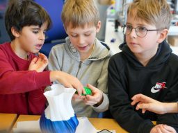Einen besonderen Unterrichtstag durften unsere Drittklässler Ende Februar erleben: Im Rahmen der Kooperation mit der Technischen Hochschule Augsburg (THA) hatte eine Gruppe von Studierenden gemeinsam mit ihren Dozenten ein Informations- und Mitmachangebot speziell für Kinder konzipiert. Unseren SchülerInnen und auch den begleitenden Lehrkräften wurden an verschiedenen Stationen Einblicke in unterschiedliche Bereiche der neuen Technologien geboten. Die Kinder konnten Drohnen steuern, erste Programmierversuche durchführen und 3D-Drucker bei der Arbeit beobachten. Ein besonderes Highlight war die Roboterdame Klara, die uns zeigte, was sie dank der Programmierer an der THA schon alles kann und beherrscht. Der Vormittag verging wie im Flug und nicht wenige Kinder kamen vermutlich an diesem Tag mit dem Berufswunsch Ingenieur oder Software-Programmierer nach Hause.